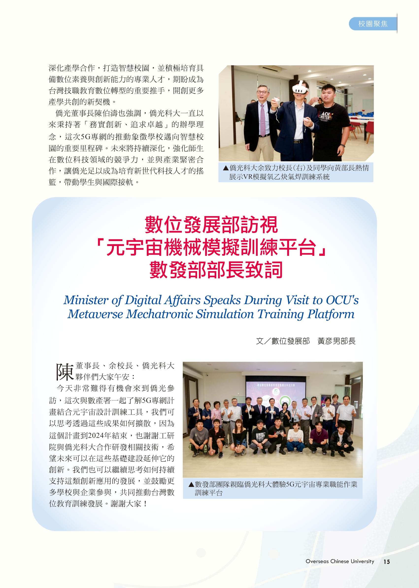 數位發展部訪視「元宇宙機械模擬訓練平台」 數發部部長致詞 Minister of Digital Affairs Speaks During Visit to OCU’s Metaverse Mechatronic Simulation Training Platform